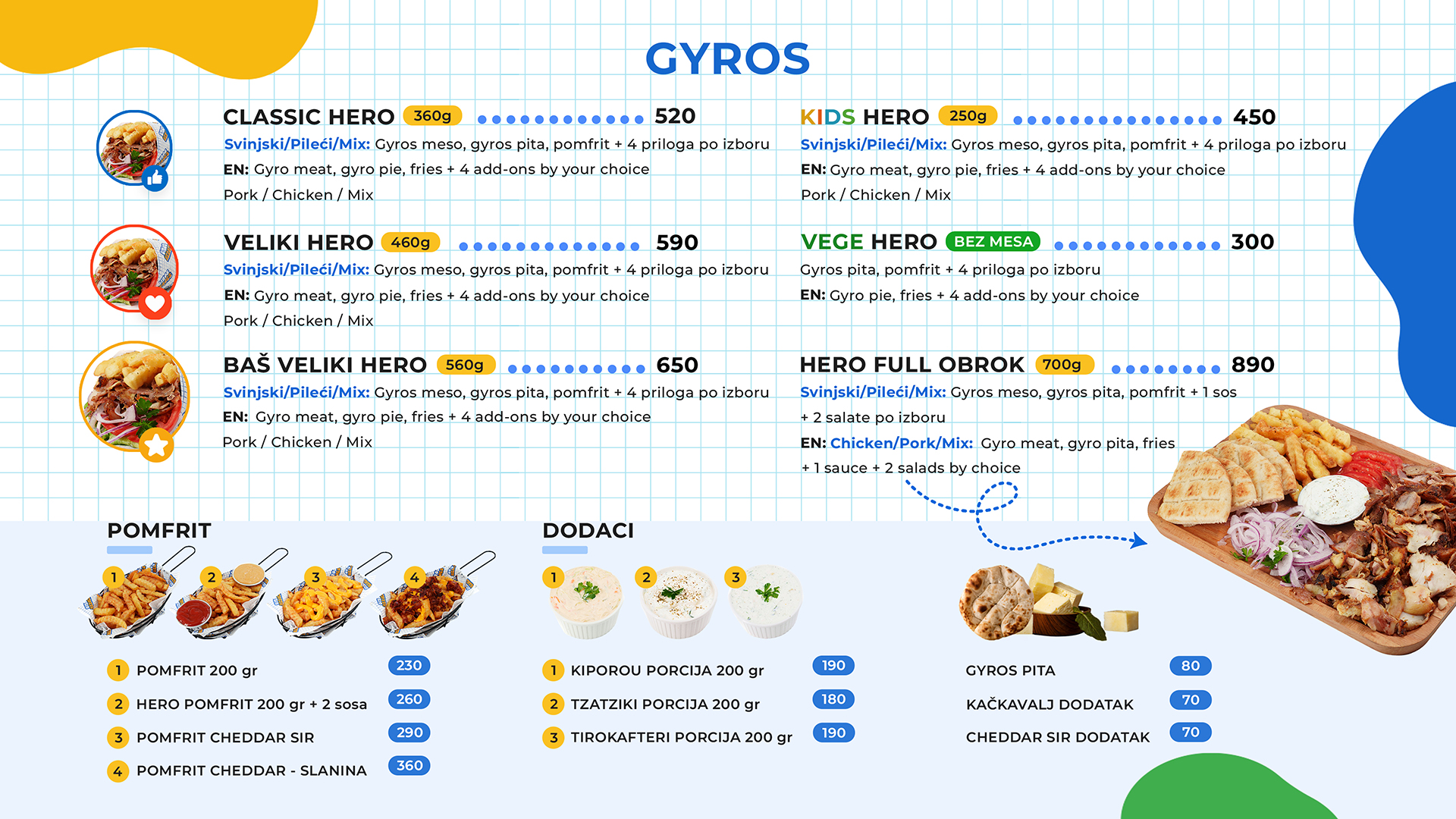 Domaći, niški, brend posvećen samo pravim uživaocima originalnog grčkog giros mesa, sa primesama našeg autentičnog začina i marinade koju pripremamo sa puno pažnje. Slušali smo vaše želje, pohvale ali i kritike na račun kvaliteta mesa i usluge, pa smo na osnovu svega toga kreirali brend koji će pružiti potpuno iskustvo i mogućnost da osetite premium kvalitet i razmazite vaša nepca.